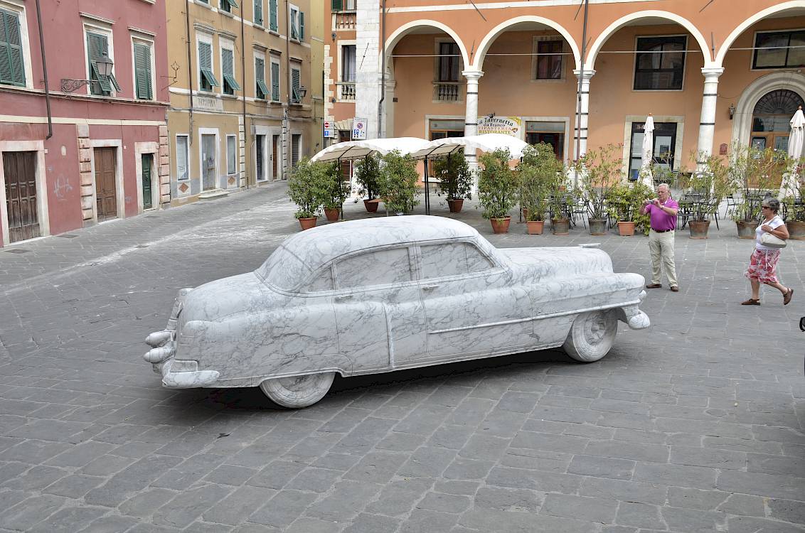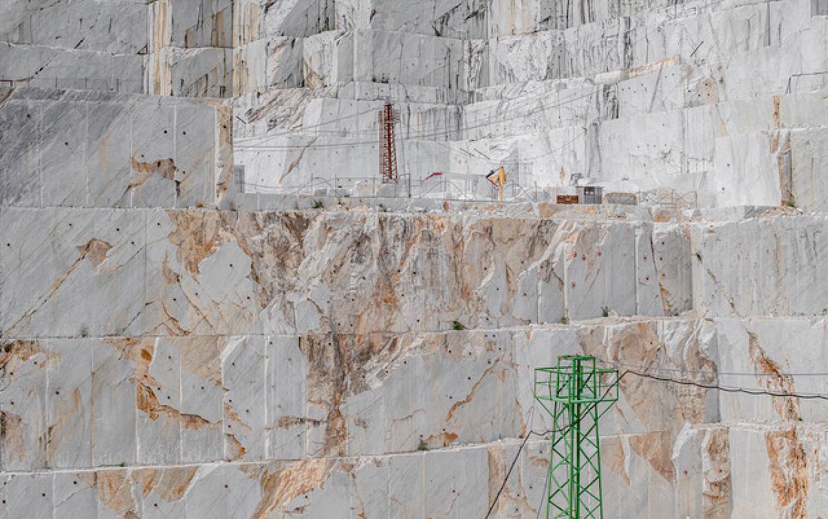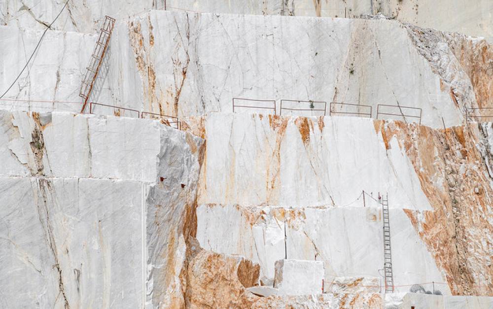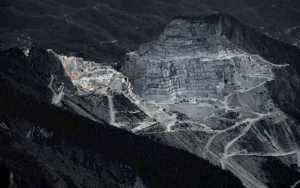 René Schädler – fasziniert vom Material „Marmor“ und der Narbe, welches der Abbau in der Natur hinterlässt – zeigt mit seinen ästhetischen und poetischen Fotografien die Stimmung in den Steinbrüchen von Carrara, sowie die Auswirkung auf den Ort und die Bevölkerung.